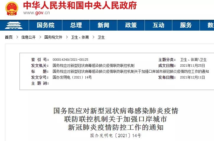 12月11日,國務(wù)院應(yīng)對新型冠狀病毒感染肺炎疫情聯(lián)防聯(lián)控機制印發(fā)《關(guān)于加強口岸城市新冠肺炎疫情防控工作的通知》,其中《通知》要求做好冷鏈?zhǔn)称穫鞑ワL(fēng)險防控工作,各省(自治區(qū)、直轄市)要抓緊組織本轄區(qū)口岸城市開展一次冷鏈相關(guān)企業(yè)風(fēng)險排查,全面評估和整改各環(huán)節(jié)風(fēng)險漏洞,并于2021年12月15日前將排查整改情況報送國務(wù)院聯(lián)防聯(lián)控機制綜合組。并要求離開陸地邊境口岸城市需持48小時核酸證明。