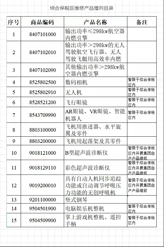 綜合保稅區(qū)第二批保稅維護產品目錄公布啦~