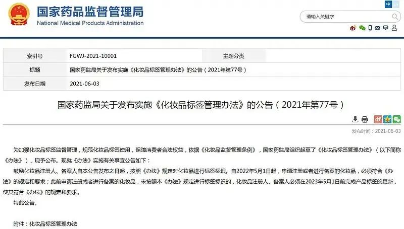 2022年5月開始,國家藥品監(jiān)督管理局關于《化妝品標簽管理辦法》(2021年第77號)將正式施行,關于進口化妝品應注意以下內容: