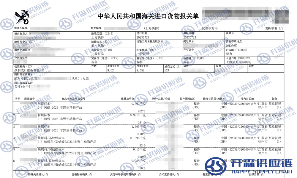 【本文結語】 上述就是上海機場動物標本進口報關代理服務【清關案例】的全部內容,希望能對您有所幫助,如有動物標本進口報關上任何疑問及問題可隨時在線聯系我們或撥打 18002611553,開森供應鏈擁有豐富的動物標本進口報關操作經驗及案例,10余年進口經驗為您所用,各類進口疑難都能為您一一解答及協助快速處理解決!