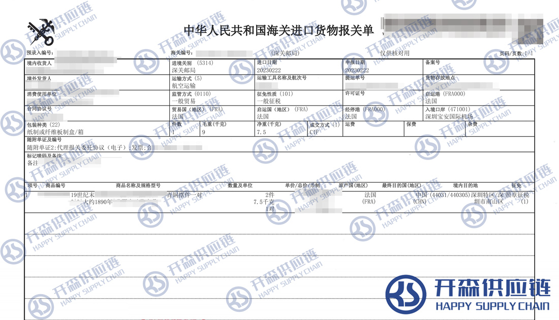 【本文結(jié)語】 上述就是青銅擺件(古董擺件)進口報關清代理服務【經(jīng)典案例】的全部內(nèi)容,希望能對您有所幫助,如有古董進口報關上任何疑問及問題可隨時在線聯(lián)系我們或撥打 18002611553,開森供應鏈擁有豐富的古董進口報關操作經(jīng)驗及案例,10余年進口經(jīng)驗為您所用,各類進口疑難都能為您一一解答及協(xié)助快速處理解決!